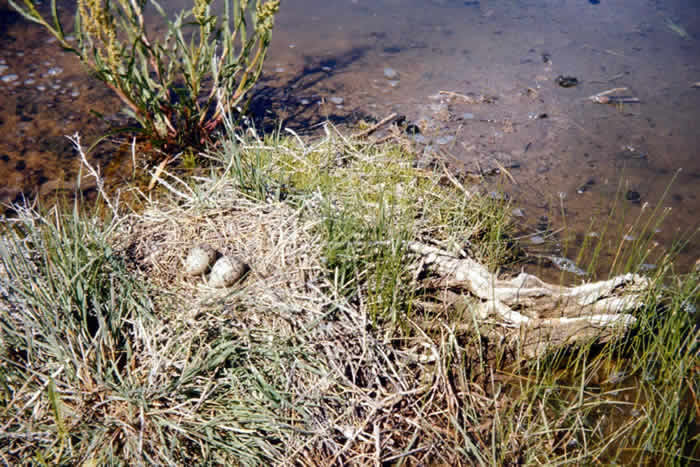 avocetFemale avocets lay three to four eggs in a shallow depression lined with grass on the beach or a mudflat. Avocets occasionally nest in colonies. Both the male and the female incubate the eggs and care for the chicks. Avocets can be very aggressive towards intruders while they are nesting. They make loud noises and even dive at intruders to drive them away from the nest!