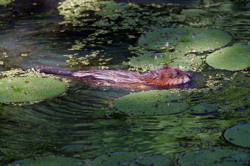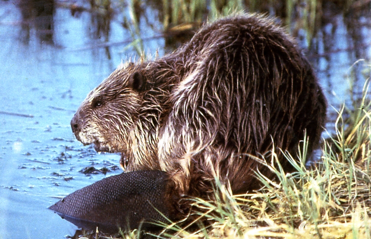 The beaver is North America's largest rodent and is built for life in the water. Adults can be up to four feet long and weigh over 60 pounds. The beaver has webbed hind feet and a large, flat, nearly hairless tail. It uses its tail to help maintain its balance when it is gnawing on trees. It will also slap its tail against the water to signal danger or to warn away predators. The beaver has short front legs with heavy claws. Their rear legs are longer, and they use their rear webbed feet help propel themselves through the water. When the beaver is under water, its nose and ears close up and a special membrane covers its eyes.