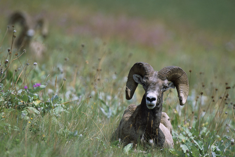 mapThe bighorn sheep is found in the Rocky Mountains from southern Canada to Colorado and parts of Nevada, western Texas, eastern California, and northern Mexico. The bighorn changes its home range seasonally. In warm months, it grazes on mountain slopes; in colder months it moves down to valleys. Female bighorns live in groups of five to fifteen sheep made up of ewes and their young. Males live in groups of two to five sheep. In the winter, bands of ewes may join together and form large groups of up to 100 sheep. Males join the female groups during mating season.