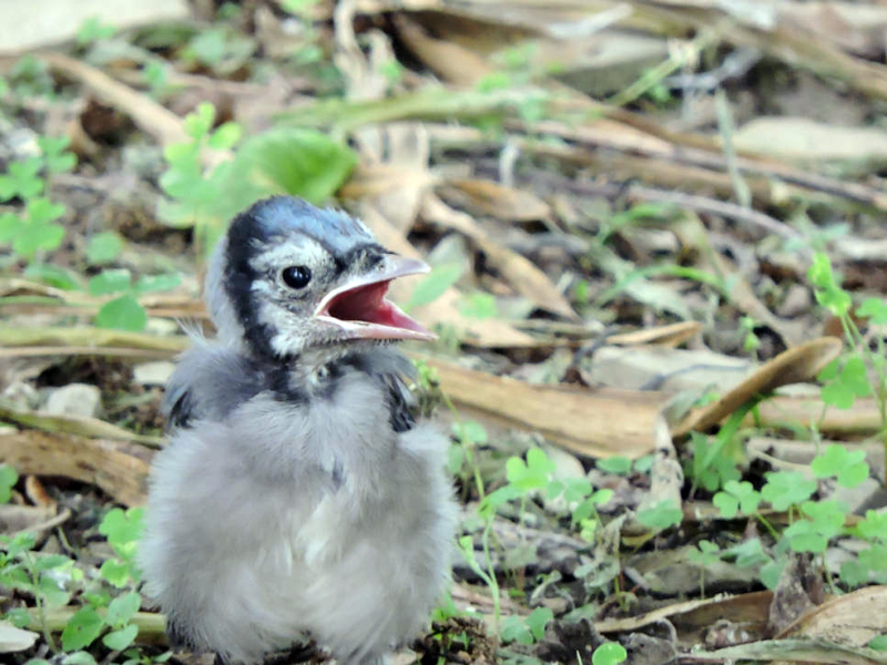 Blue JayThe female blue jay lays four to six eggs in a nest made of sticks and twigs and lined with grass. Nests are made in trees and shrubs. The female incubates the eggs, although sometimes the male will help. The eggs incubate for about 17 days. Both parents bring the chicks food.
