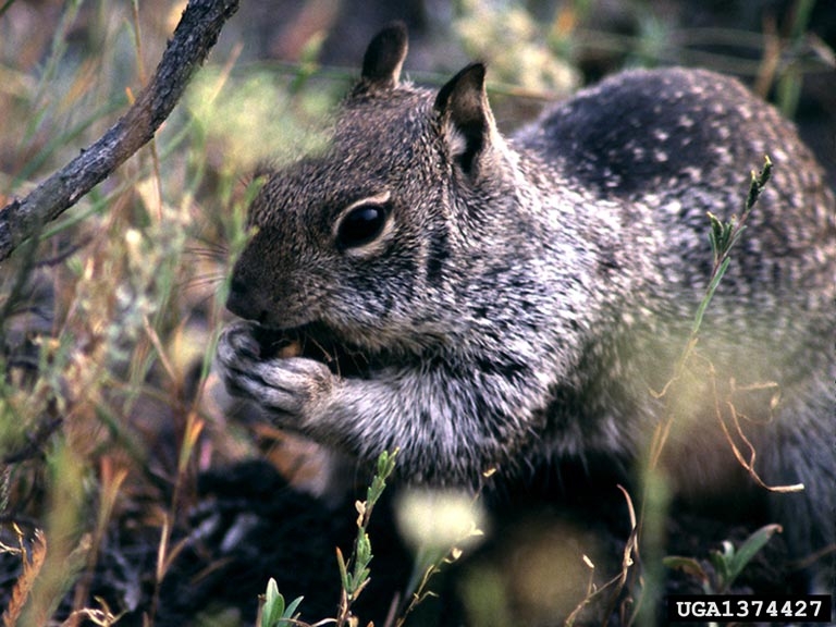 The California ground squirrel can be found in open areas including fields, pastures and lightly wooded areas.
