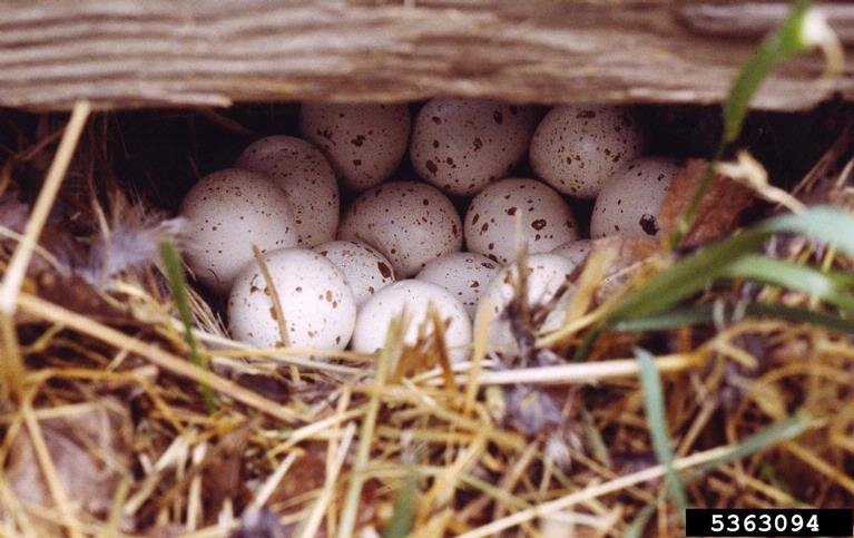 Males often compete for a mate. They will mate with only one female. Females usually lay between 12-16 cream and brown speckled eggs. Their nest is a shallow hollow or scrape in the ground that is lined with grass. The female incubates the eggs for about three weeks. Both parents will care for the chicks.