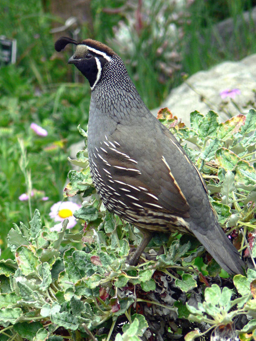 The California quail lives in grasslands, foothills, woodlands, canyons and at the edge of deserts. It likes areas with lots of brush.