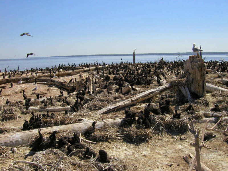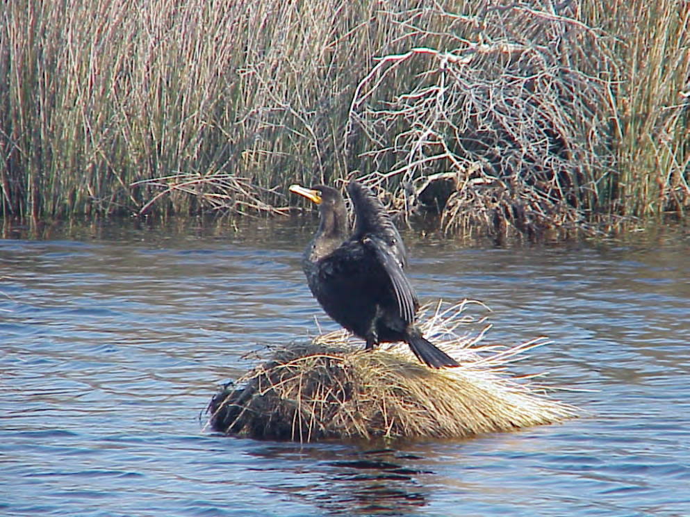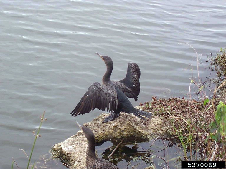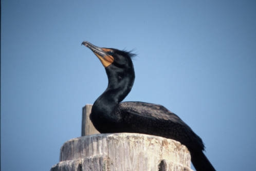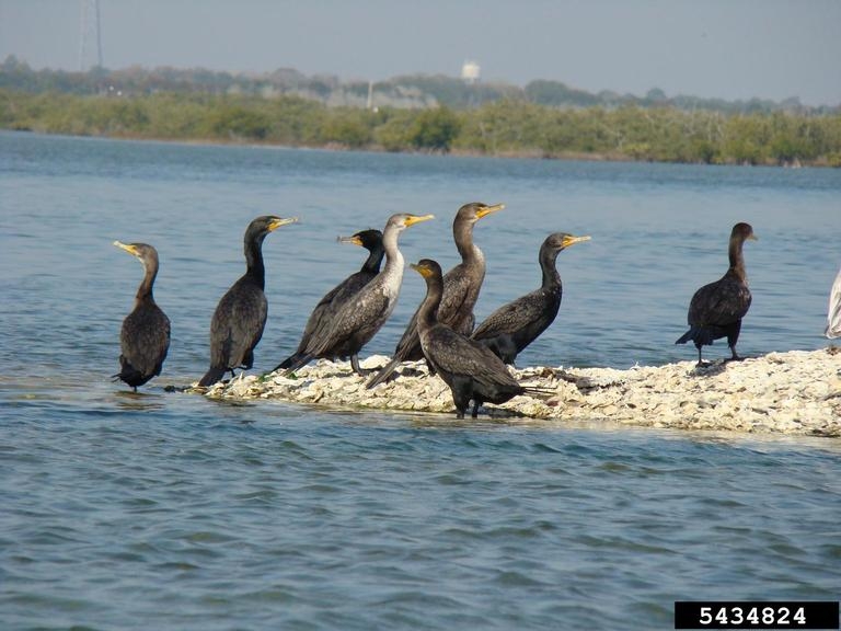 The double-crested cormorant lives in brackish and freshwater habitats on lakes, rivers, swamps, bays and coasts. |