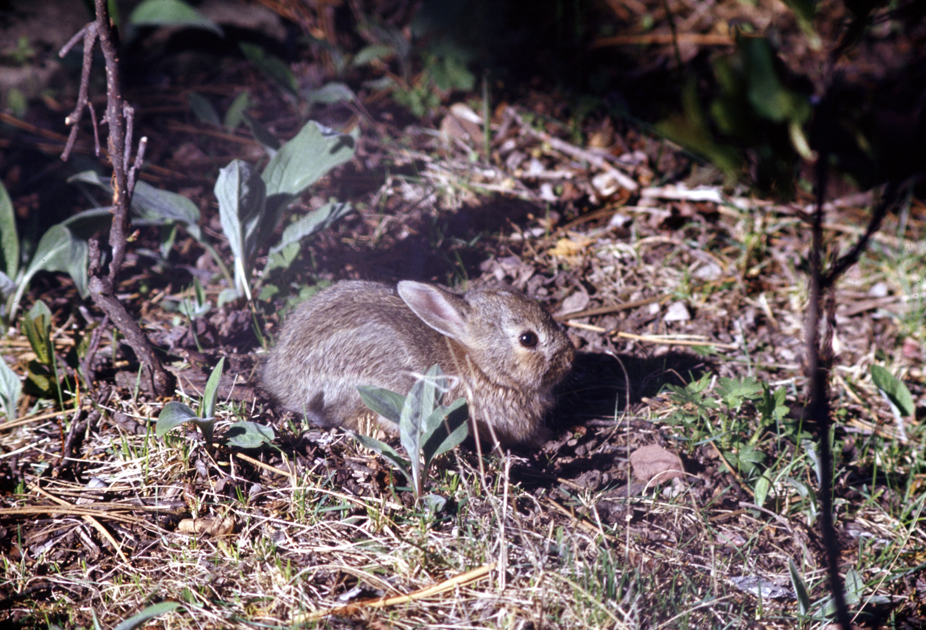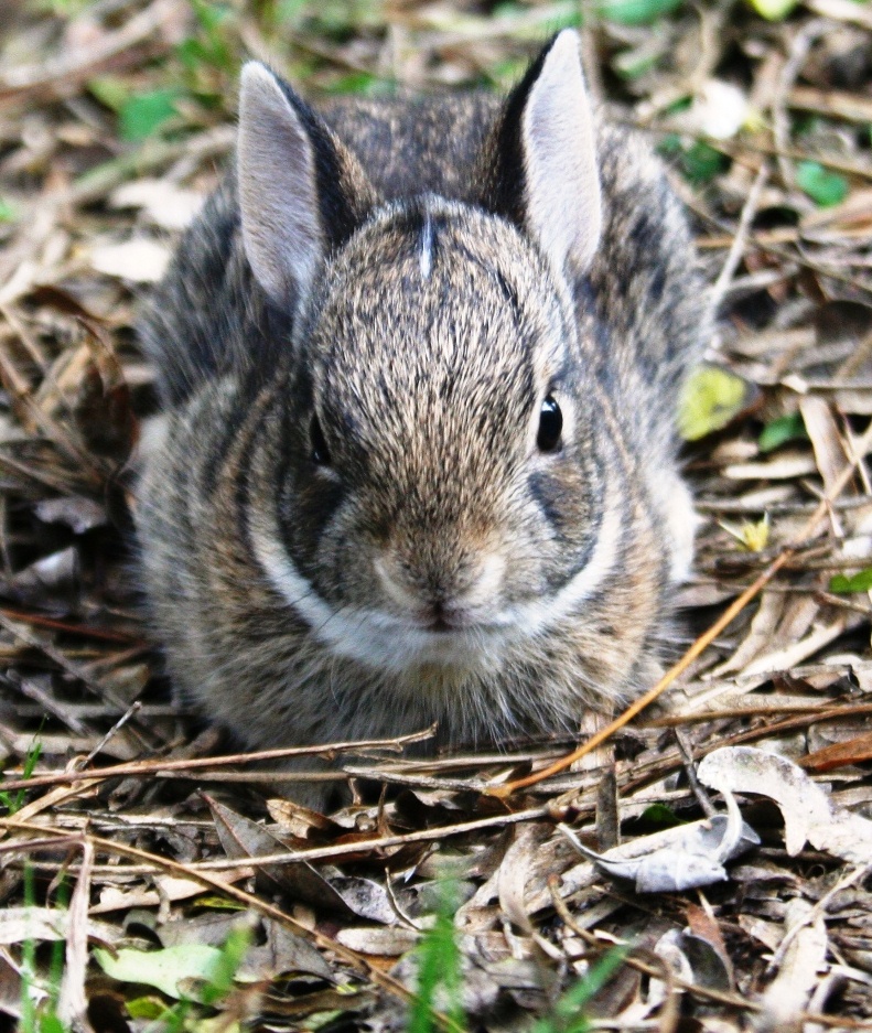 There is another species of cottontail in New England, the New England cottontail (Sylvilagus transitionalis), that is very similar to the eastern cottontail. It has a black patch between its ears and is usually smaller than the eastern cottontail and has shorter ears. It rarely comes out into the open.