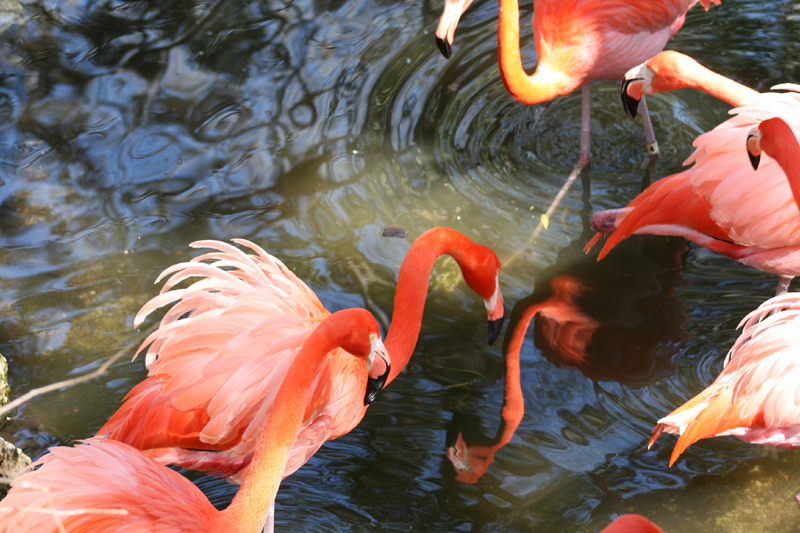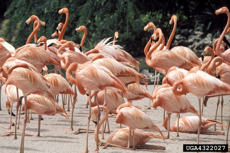 The American flamingo lives in mudflats and shallow coastal lagoons with salt water.