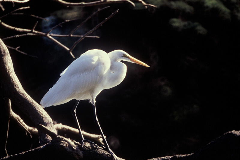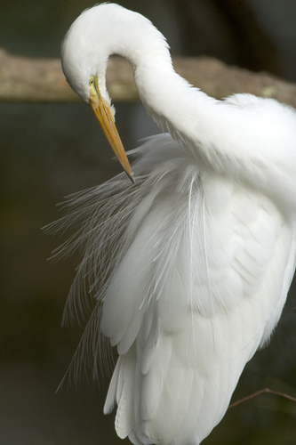 Great EgretIn the early 20th century, the long feathers of the great egret were used on ladies hats and the great egret was almost hunted into extinction.