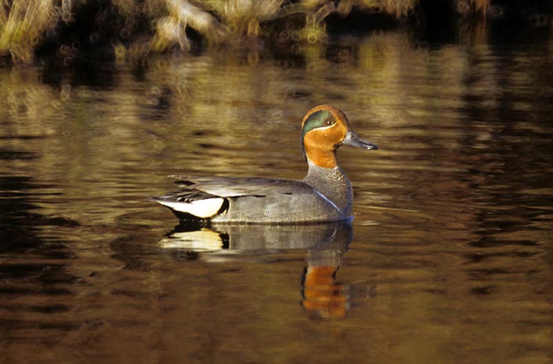 The green-winged teal can be found in marshes, ponds and marshy lakes.