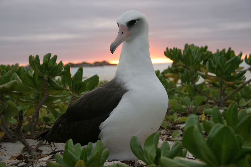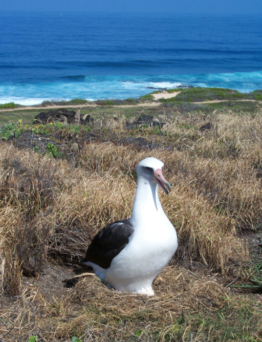The laysan albatross lives an open ocean waters and breeds on islands.