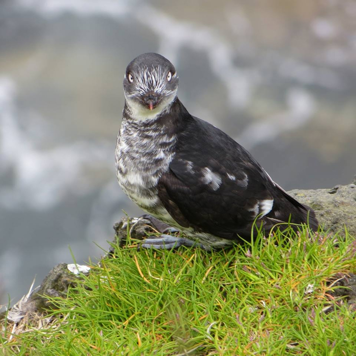 The least auklet is a sparrow-sized seabird. It is about six inches long.