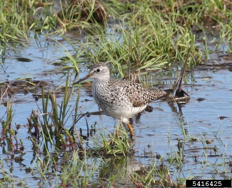 The lesser yellowlegs spends the breeding season in grassy meadows, bogs, burned out forest areas and other open areas or natural clearings. During migration and the winter, it can be found along the shores of lakes and rivers, in marshy ponds and in coastal marshes and mudflats.