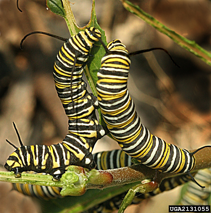 MonarchMonarch butterfly larva feed on milkweed. Adults gather nectar from flowers. The monarch is not a very pleasant meal for predators.