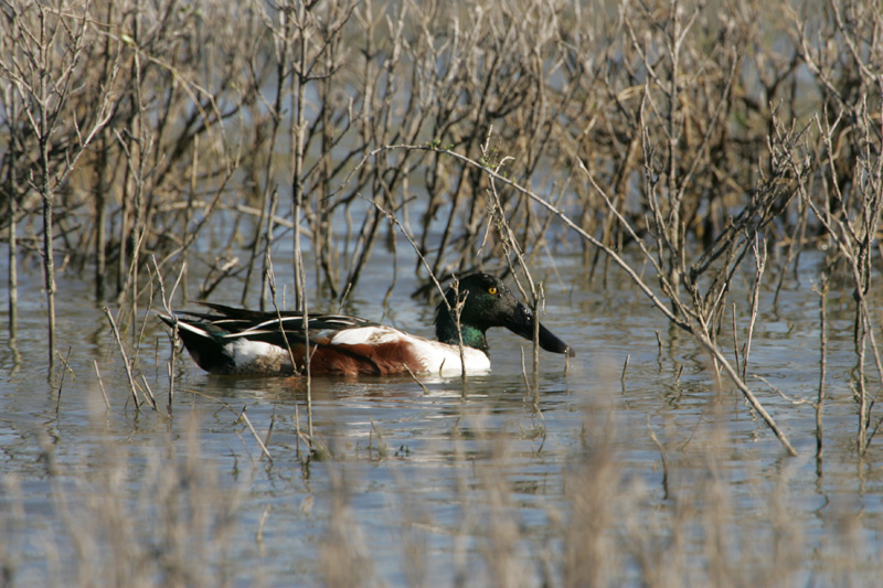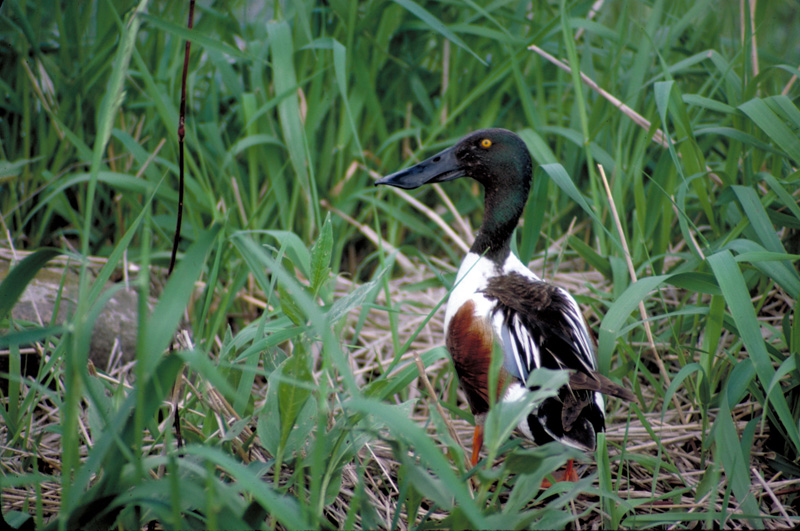 Northern ShovelerThe northern shoveler can be found in marshes and prairie potholes. It needs habitats with shallow water with muddy bottoms.