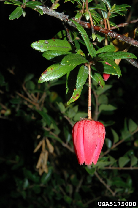 The Chilean lantern tree has bright red flowers that look like lanterns. It is native to Chile, but is also an ornamental tree found in gardens. The blue marble tree is native to Australia. It has fruit that looks like bright blue marbles and blue seeds! The seeds are often used as beads.
