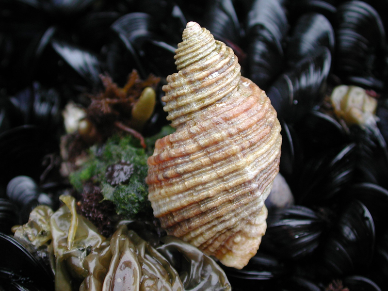 upper midlittoral zone. It is exposed to some water during high tide when waves wash over it. Organisms that live in this zone must be able to survive in both wet and dry environments. They also must be able to survive pounding waves! Barnacles, limpets, whelks and mussels that live in this zone attach themselves to rocks so they aren't washed away by the waves.