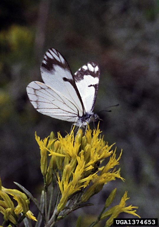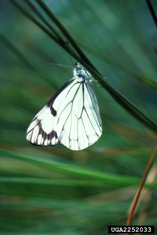 The pine white butterfly is usually found fluttering up high among the conifer trees. Some people consider the pine white a forest pest because the caterpillars can sometimes defoliate conifer trees.