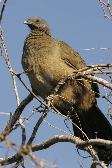 The plain chachalaca is a very noisy bird. At dawn and sunset, groups of them will call loudly from the treetops. The plain chachalaca does not migrate.