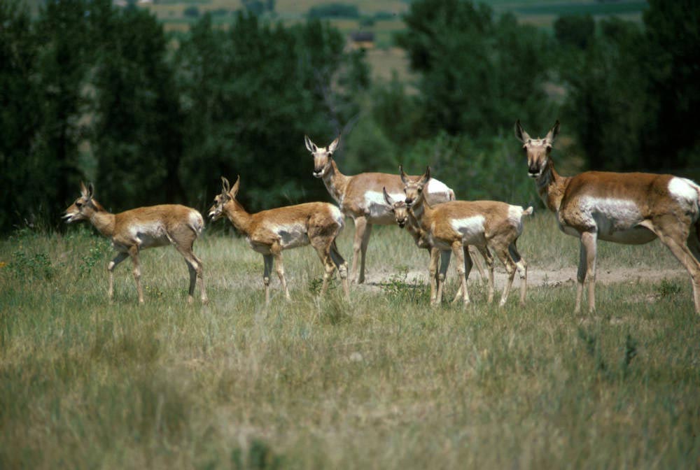 PronghornThe pronghorn lives in grasslands, brushlands and deserts. The pronghorn lives in herds that change in size depending on the season. In the summer, females and their young will gather in bands of less than a dozen individuals. Young males less than two years old form bachelor herds. Breeding males establish individual territories. In the winter, the herd will include males and females and can include hundreds of pronghorns. The pronghorn migrates from a summer feeding ground to a winter feeding ground.