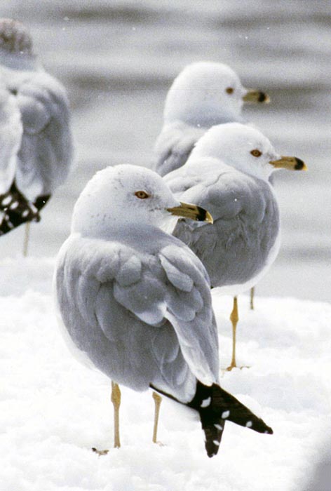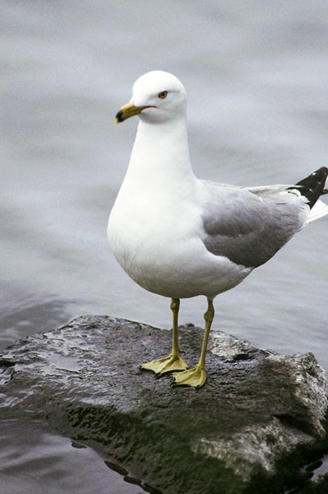 The ring-billed gull makes its home on lakes and rivers. It may move to the ocean in the winter.