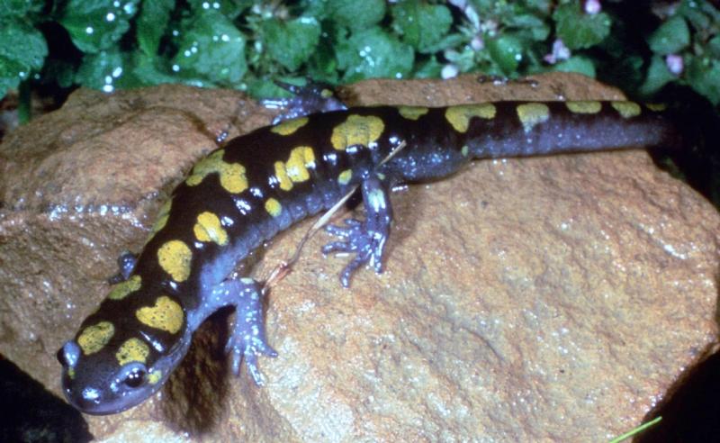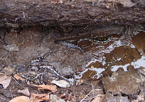 The spotted salamander is a mole salamander and  spends most of its time underground. It needs areas with soil that is easy to burrow into. Some spotted salamanders can live to be 30 years old!