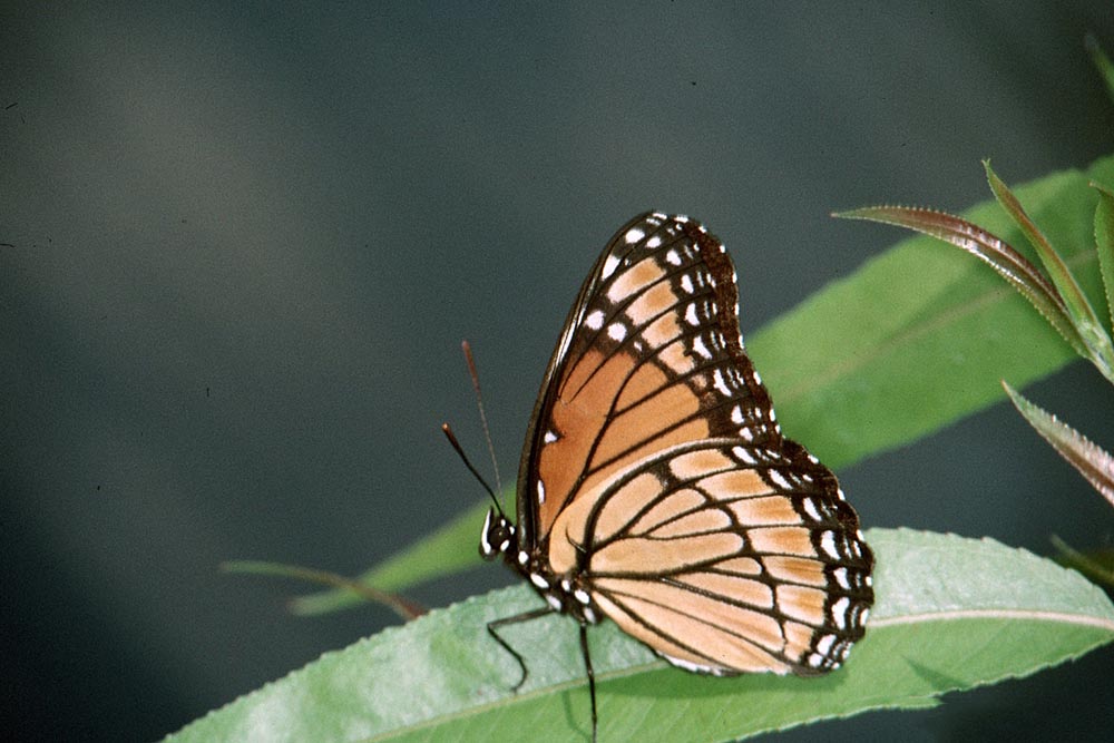Viceroy ButterflyThe viceroy mates in the afternoon. The female lays her eggs on the tips of the leaves of poplars and willows. There are usually two or three generations of viceroys born each breeding season.