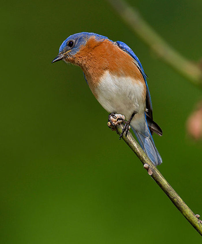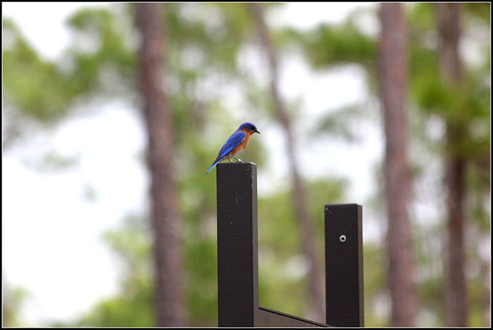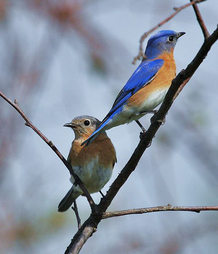 Eastern BluebirdThe Eastern Bluebird is found in open land with scattered trees and other high spots for perching, nesting and hunting. It is often found in parks, gardens, fields and other open areas.