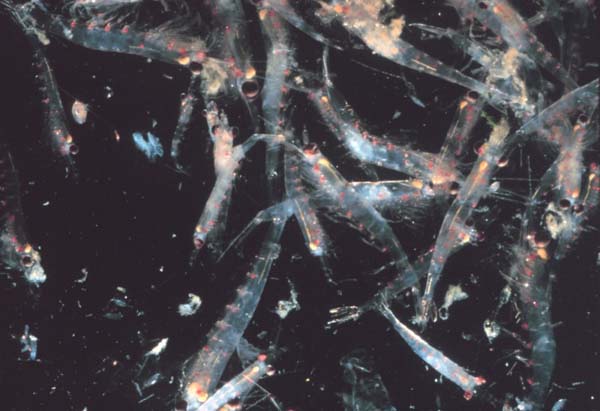 KrillKrill are small, pinkish, translucent shrimp-like crustaceans. They range in size from less than an inch to five inches in length. Krill are found in all the world's oceans.During the day, krill are found deep in the ocean where they are safe from predators. At night, they rise to the surface to feed on phytoplankton and zooplankton. Krill live, swim, and feed in large groups or swarms.