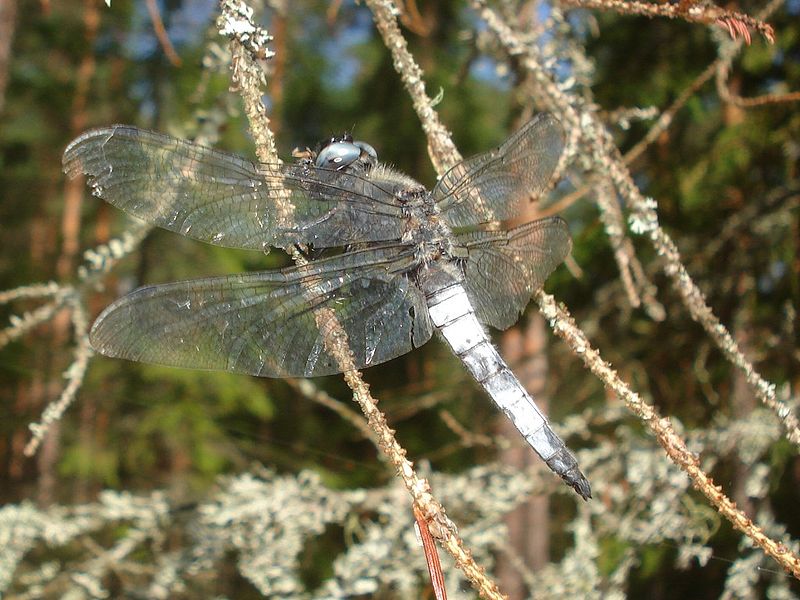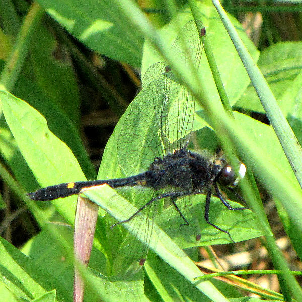 The black meadowhawk is found near bogs, fens, marshes, and sometimes ponds or lakes.