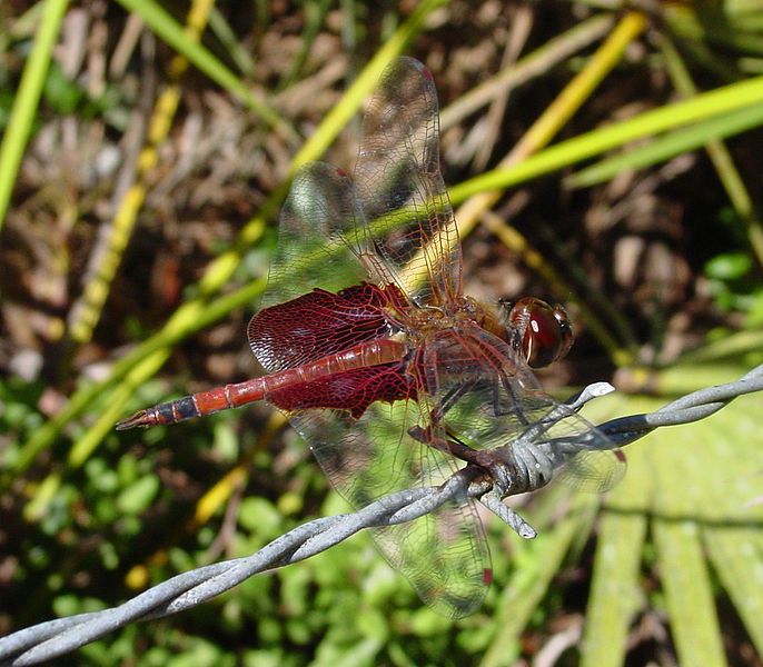The carmine skimmer is found at temporary and permanent ponds, lakes, ditches, and slow streams.