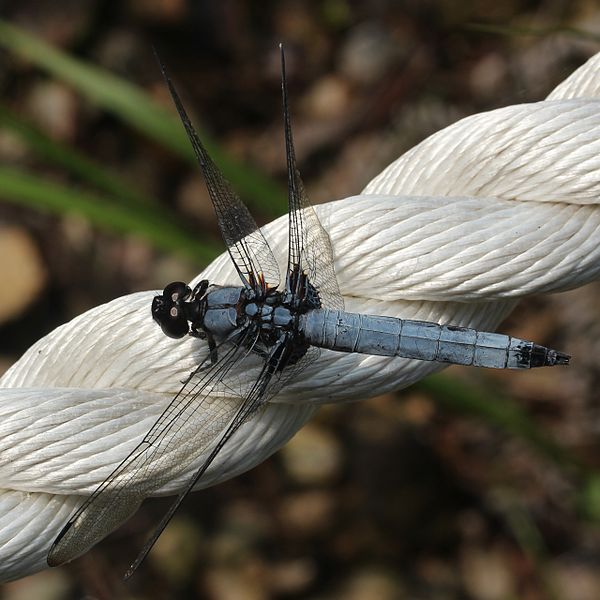 The slaty skimmer is usually found at marshy ponds, lakes and slow flowing forest streams with mucky bottoms.