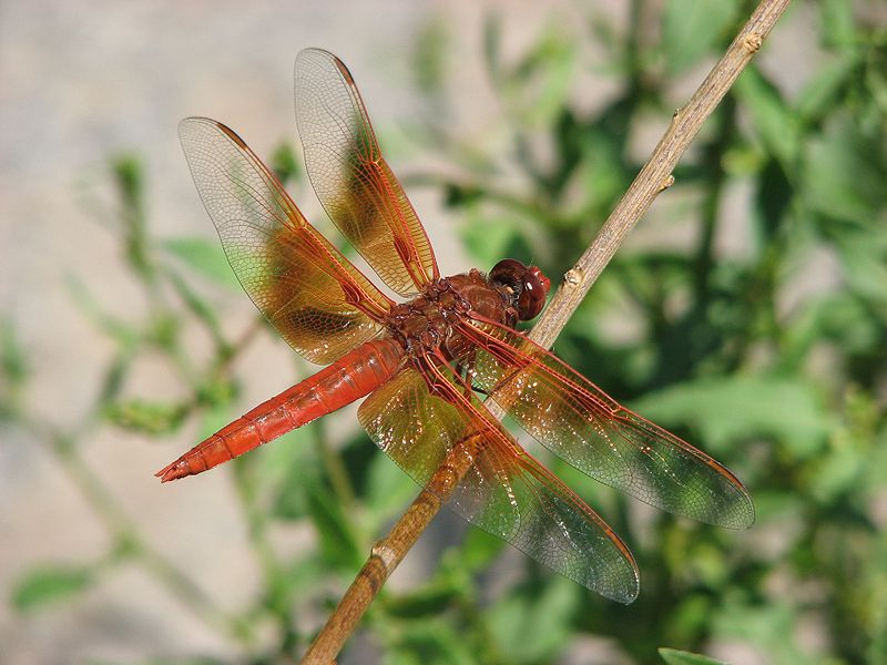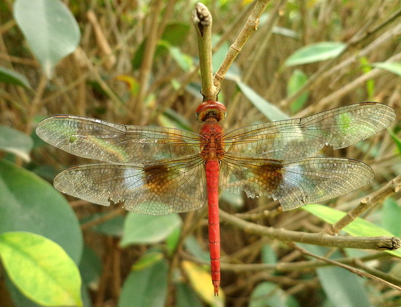 The broad scarlet is found in Africa, southern Europe, the Middle East, and west Asia. It is also known as the common scarlet-darter.