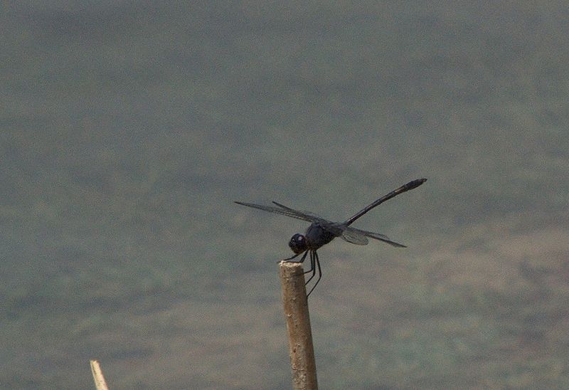 The spot-tailed dasher is found in near still or slow-moving water with emergent vegetation.