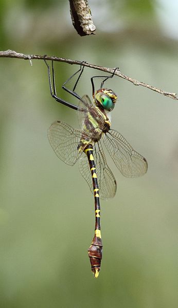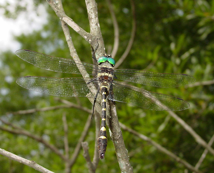 River cruisers are large dragonflies. Most species in this family have green eyes that almost meet at the top of their heads.