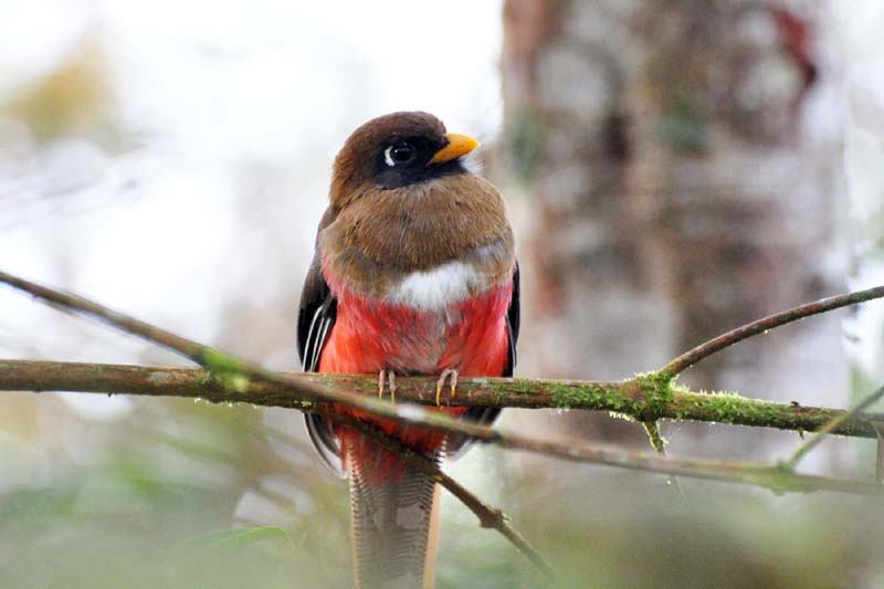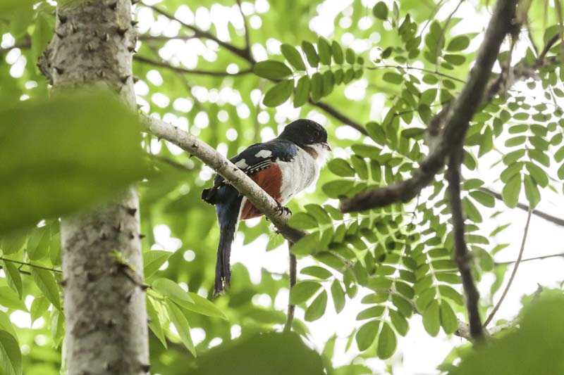 The white-tailed trogon is found in Colombia, Ecuador, and Panama.