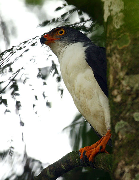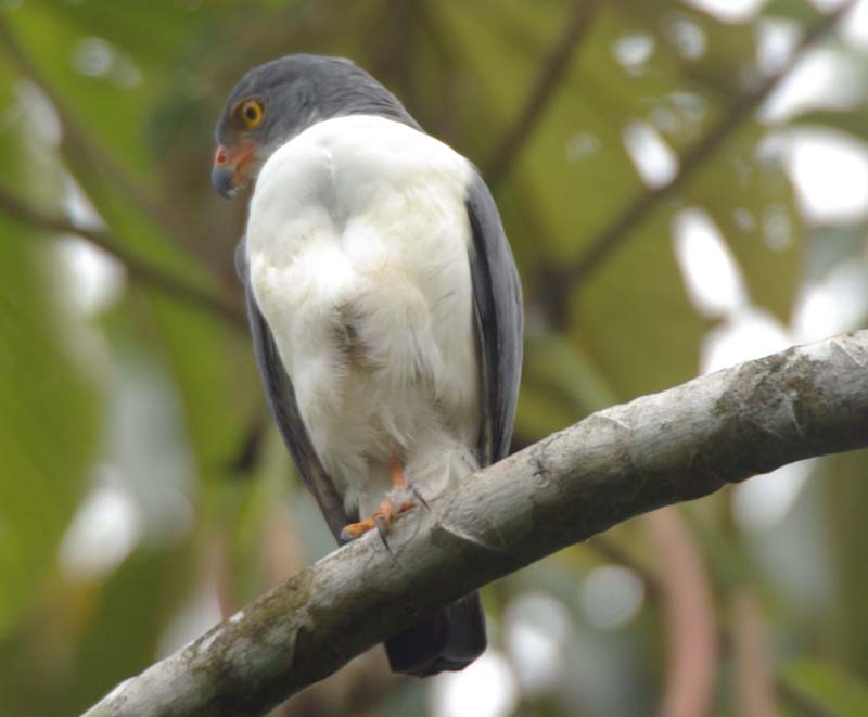 The slaty-mantled sparrowhawk found in lowland rainforests.