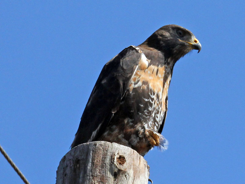 Swainson's hawk is often seen perched on a fence post in a prairie or open range.