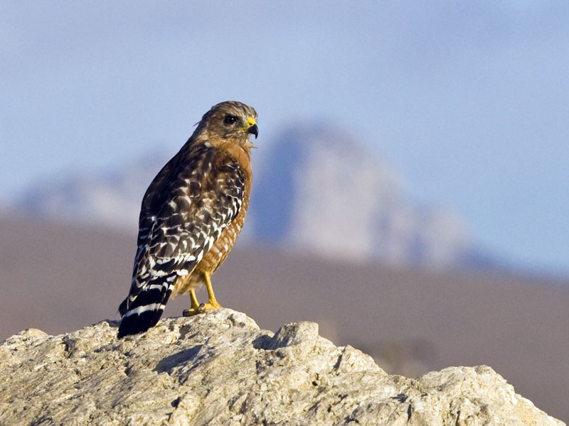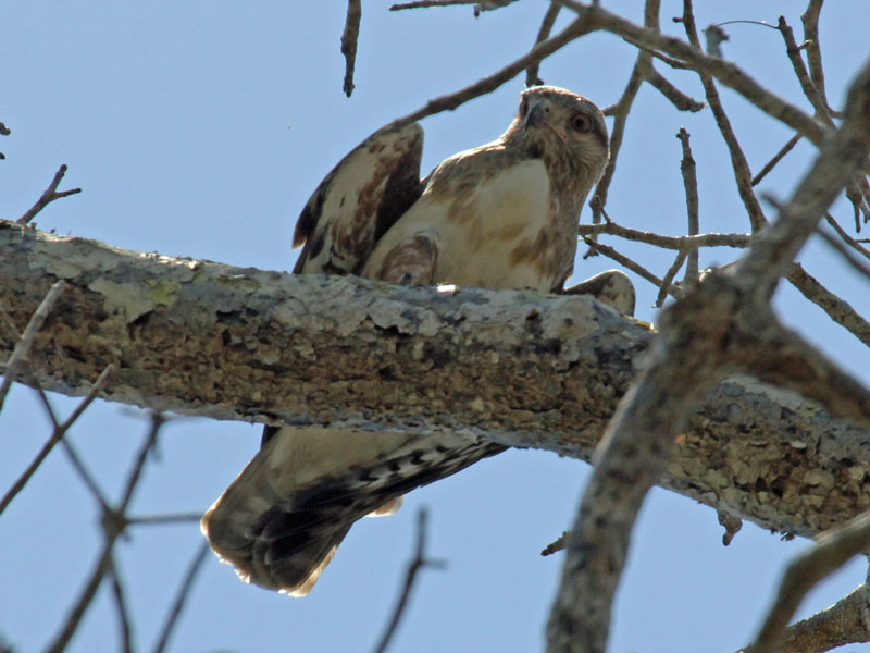 Swainson's hawk breeds in the western half of the U.S. It travels in flocks that can number over 10,000 birds to its wintering grounds in South America.