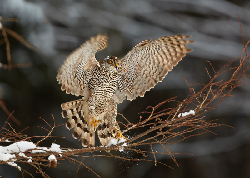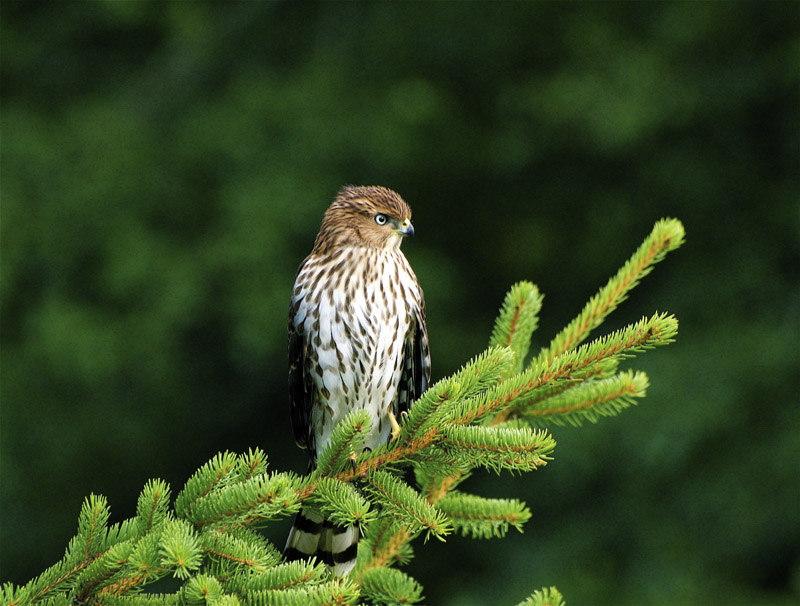 At 9.5-12 inches in length, the sharp-shinned hawk is the smallest hawk found in the U.S. and Canada.