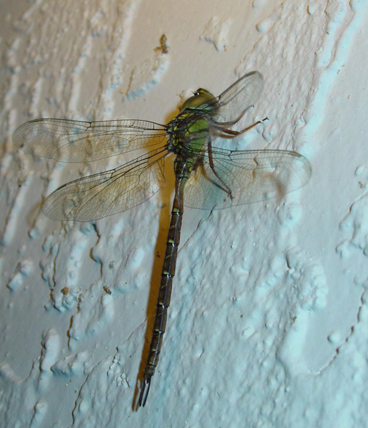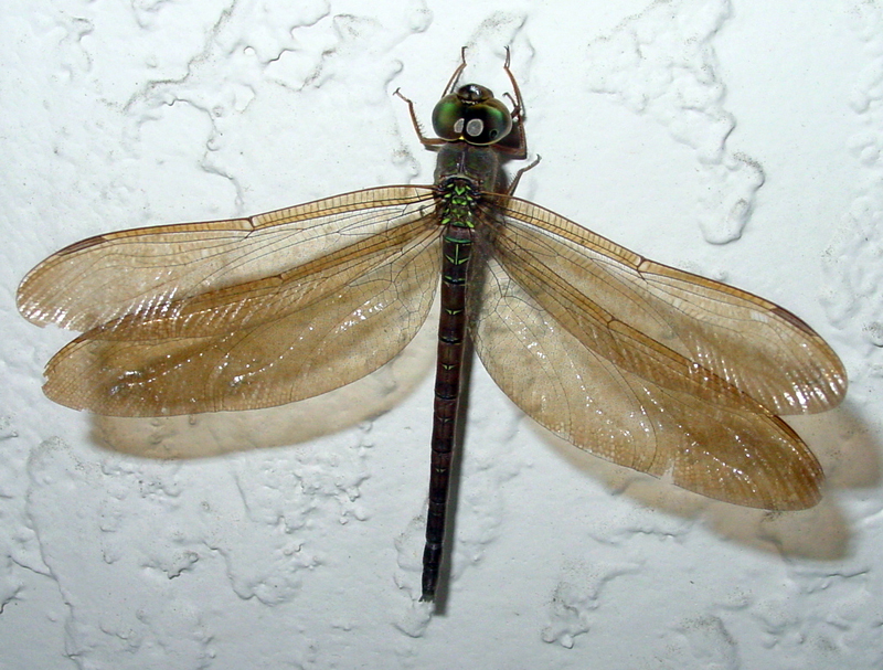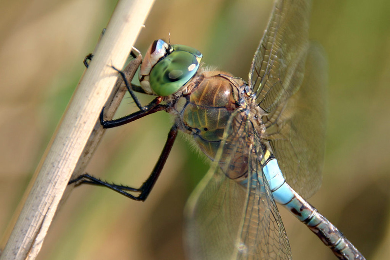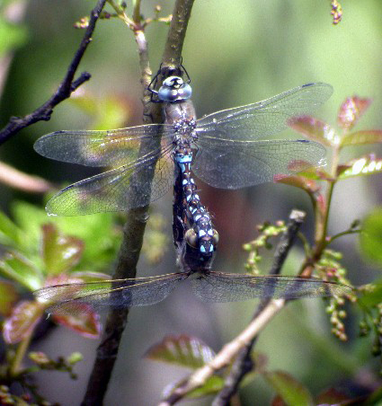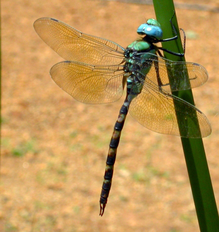 Common Green DarnerThis family includes the largest species of dragonflies found in North America and Europe. They range in size from 2-5 inches in length. Most species are around 3 inches in length. They are known as darners in North America because the female's abdomen looks like a sewing needle when she cuts into plant stems to lay her eggs.