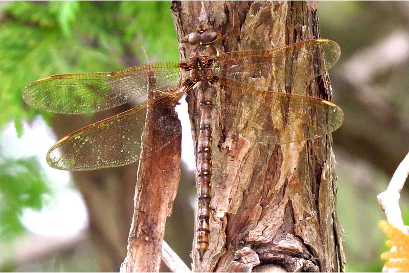 The spatterdock darner is found near shallow, fishless ponds with lots of water lilies.