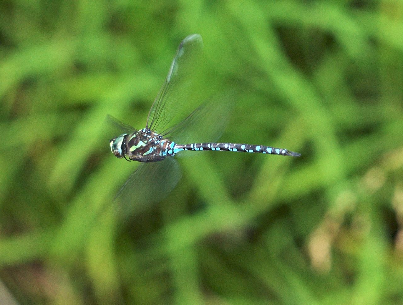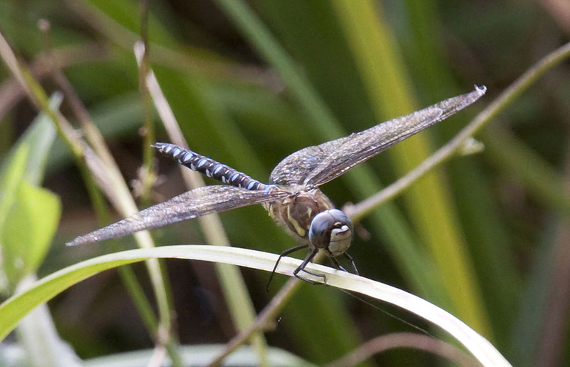 The variable darner is found near lakes and ponds with dense shoreline vegetation, marshy or boggy ponds, fens, and saline ponds, as well as slow-moving streams.