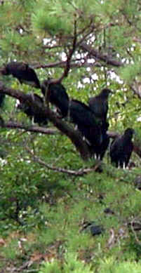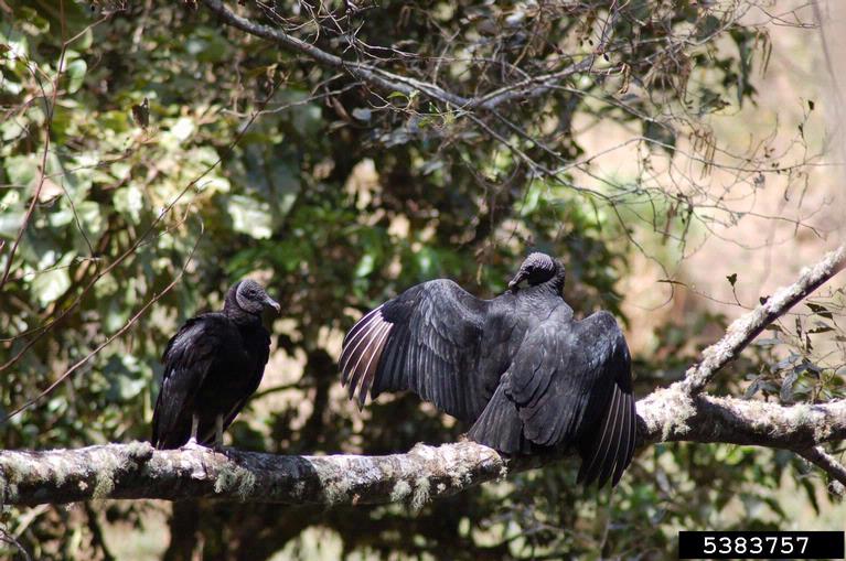 Life CycleThe female black vulture lays 2 eggs under a bush, in a hollow log, under large rocks, or in a cave. Both the male and the female incubate the eggs for 32-41 days. The chicks fledge when they are 63-70 days old. BehaviorThe black vulture is very protective of the carrion it finds and aggressively drives the larger turkey vulture away from a find! It is normally a silent bird, but it hisses, grunts, and even barks to drive other scavengers away from its food. |