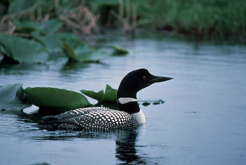 There is one family in this order with five species of loon. Loons are duck-sized birds with long necks; webbed feet; and sharp, pointed bills. Loons have gray, black, and white feathers.