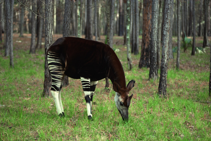 The okapi has striped hindquarters and looks like it might be related to the zebra, but it is related to the giraffe!