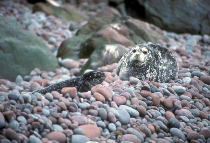 Range The harbor seal is found along the Atlantic Coast from Greenland and the Hudson Bay south to the Carolinas and along the Pacific Coast from the Southern Arctic south to the Baja California. Some populations of harbor seals migrate south in the winter. In New Hampshire, harbor seals can frequently be seen in the winter and spring basking in the sun on the rocks exposed during low tide just north of Wallis Sands Beach in Rye. You'll have to look carefully, because they look like rocks! You can see them really well with binoculars!