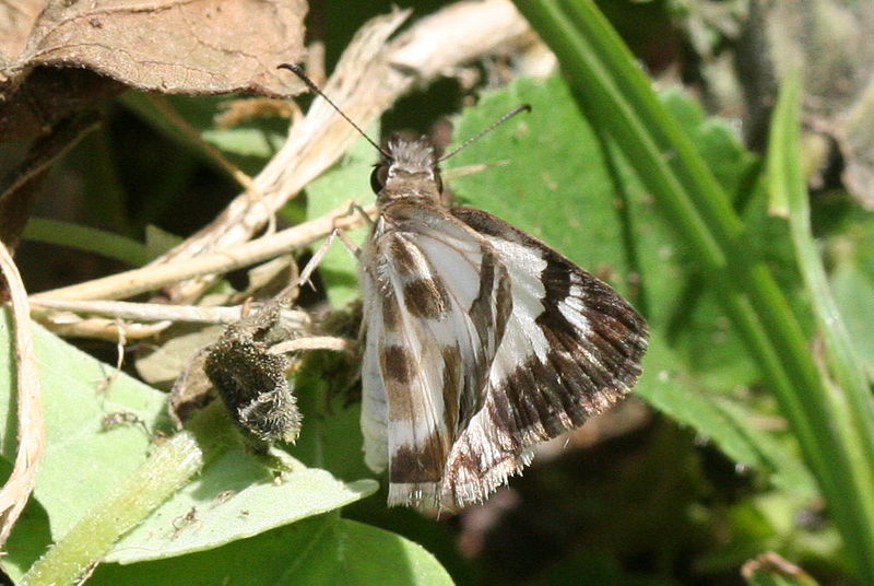 The two-banded checkered-skipper is found in the mountains from British Columbia and Alberta to southern California, Arizona, and New Mexico