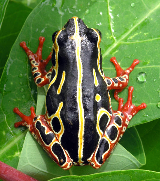The painted reed frog is active at night. It spends the day resting on reeds or other plants.