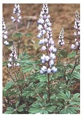 The blue lupine is found from Maine south to Florida and west to Minnesota and Louisiana Fun FactThe lupine gets its name from the Latin word for wolf - lupus. It was once thought that the lupine plant absorbed or "wolfed up" all the mineral content from the soil. We know know that the plant actually is a nitrogen fixer. Its roots have nodes with colonies of nitrogen fixing bacteria that help it survive in nutrient poor soil. Lupine actually deposit nitrogen into the soil! |