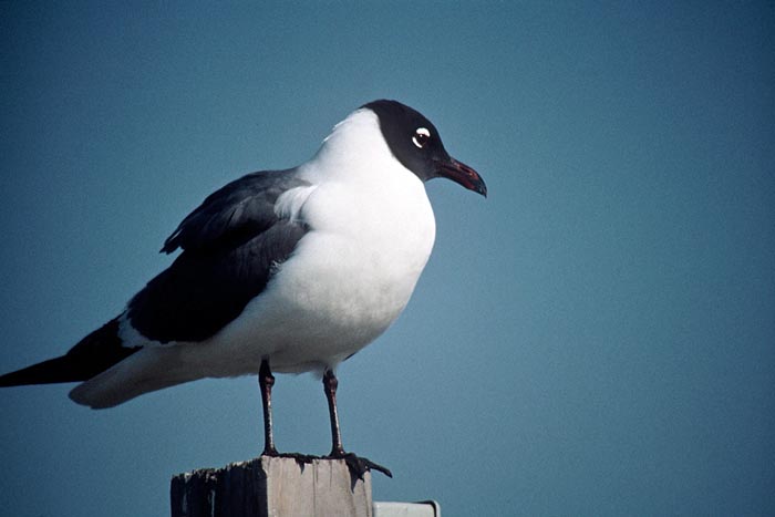 The laughing gull is rarely found inland, and usually it is not found far out at sea.