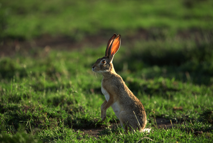 The European hare is found in open fields and pastures.